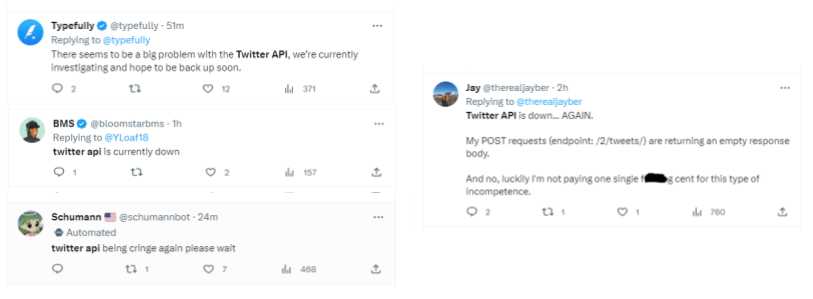 At some point overnight, Twitter (now X) changed something. From that point on, instead of getting tweets from their servers, we just started getting empty responses. It just stopped returning anything. No error messages, no warnings, no hints, just blank responses. It’s basically the technical equivalent of shrugging your shoulders and smiling.