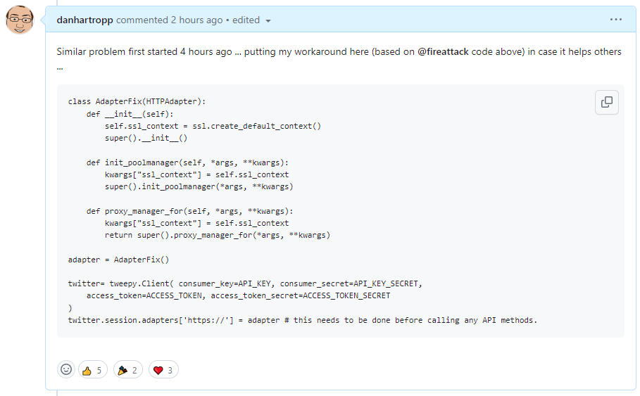 And that’s the whole point of this blog post. There is no way that I’d have been able to fix this on my own. The underlying problem was caused by a really esoteric network setting that I’d never even heard of before. By providing a place for people to identify problems and help fix them, the maintainers of this software library have enabled a very rapid fix to a problem that they didn’t even cause.